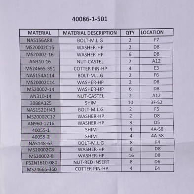 MAIN GEAR BOLT KIT 502